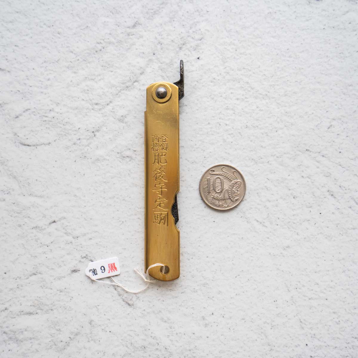He named it “Higonokami Knife” because many of his customers were in Kumamoto area (formally Higo country), which turned out to dramatically increase his sales. The blades have gradually changed their shapes. Unlike single-edged knives, the double-edged blades (V-shaped cross section) were in those days considered common. The earlier blades had a sharper tip (shape of a bamboo leaf), but now they have square shapes. The sheaths had a vertically folding style and a cross folding style, now the vertical one has to be custom made.