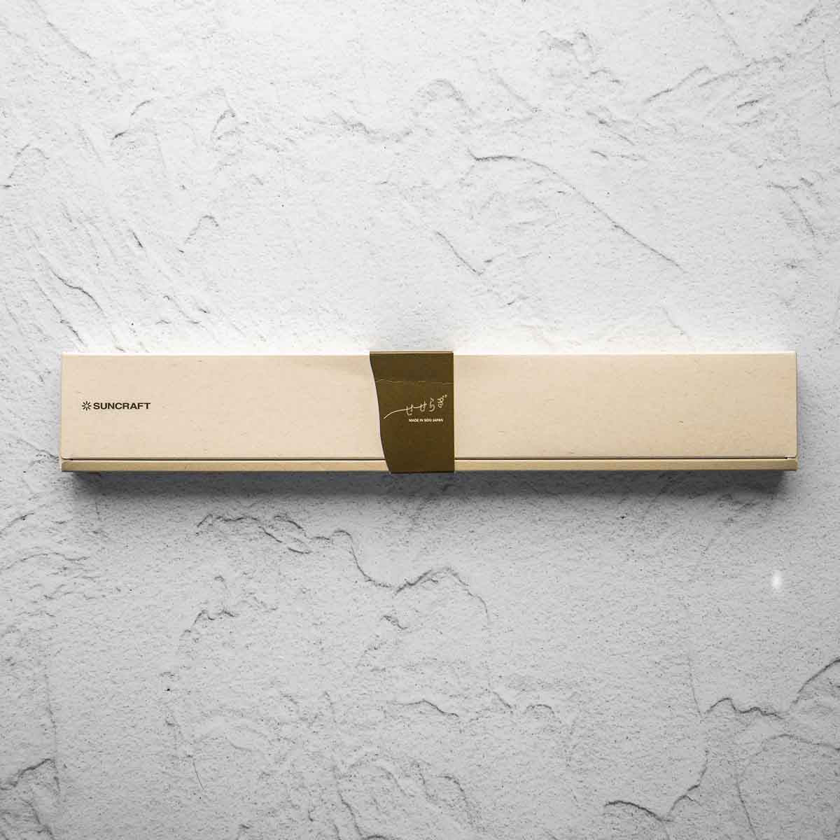 A classy, cleverly designed bread knife made by Suncraft in Japan. The 2 alternating types of serrations make for easy cutting of bread of all kinds. The deserving winner of the Good Design Awards for kitchenware.