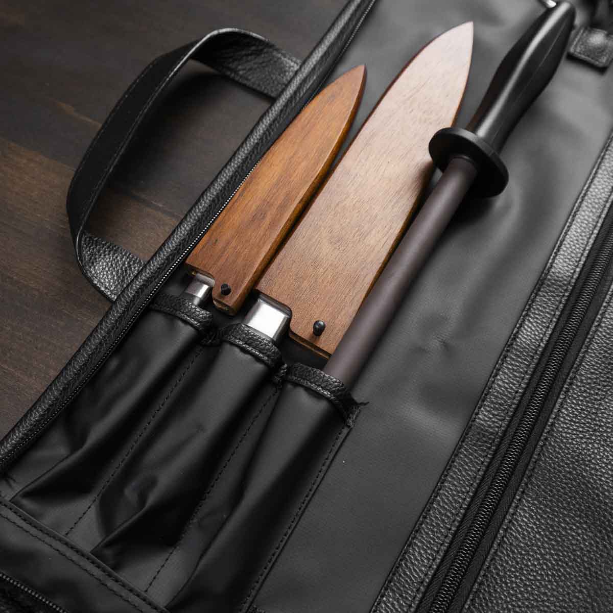 Bundle contains Gyuto 210mm, Petty 120m, Wooden Saya x 2, Honing Rod & Porter 3 Pocket Knife Bag
