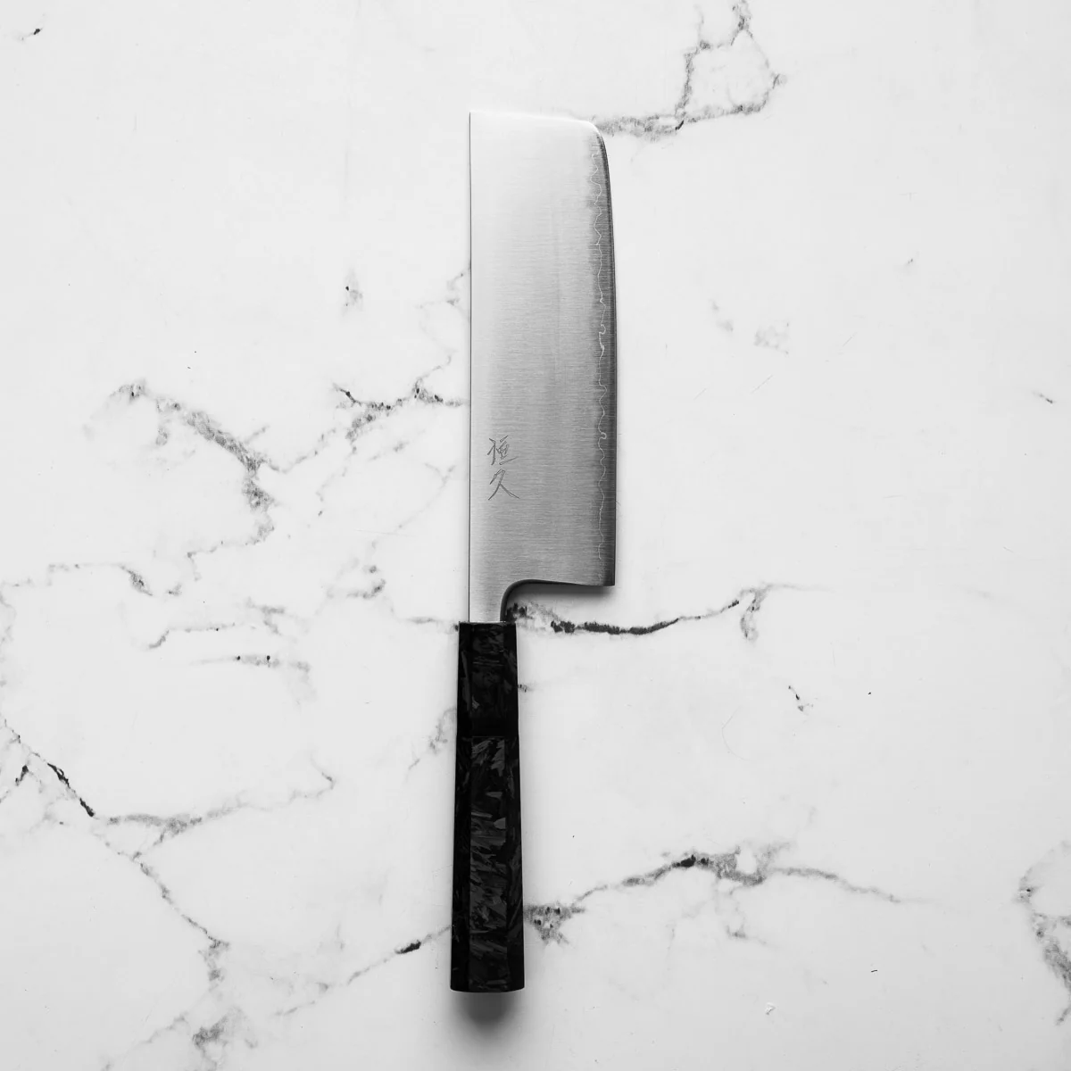 Tsunehisa Migaki Blue Super Nakiri 160mm - Dark Carbon Fibre—